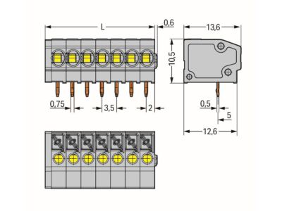 Svorka na desky plošných spojů; Tlačítko; 1,5 mm²; Rozteč 3,5 mm; 10pól.; Push-in CAGE CLAMP®; Se zkušebním otvorem; Šedá