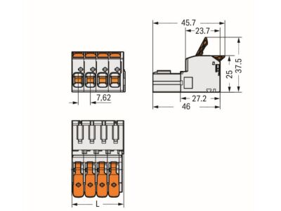 1vodičový konektor s pájecími piny; Páčka; Push-in CAGE CLAMP®; 10 mm²; Rozteč 7,62 mm; 5pól.; 100% ochrana proti chybnému zapojení; 10,00 mm²; Světle šedá