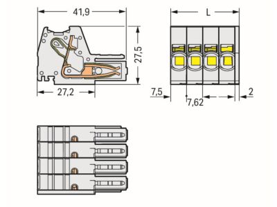 1vodičová pružinová svorkovnice; Push-in CAGE CLAMP®; 10 mm²; Rozteč 7,62 mm; 7pól.; 100% ochrana proti chybnému zapojení; Manipulační destička; 10,00 mm²; Světle šedá
