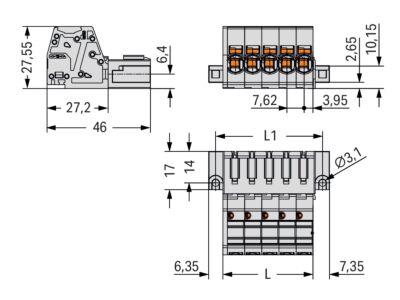 WAGO Konektor 831-3203/109-000 1vodičový s pájecími piny Push-in CAGE CLAMP® 10 mm², šedá