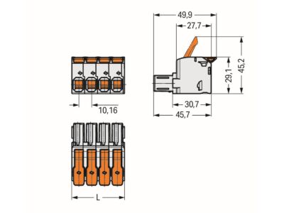 1vodičová pružinová svorkovnice; Páčka; Push-in CAGE CLAMP®; 16 mm²; Rozteč 10,16 mm; 5pól.; 100% ochrana proti chybnému zapojení; Podložka pro odlehčení tahu; Postříbřené kontakty; 16,00 mm²; Světle šedá