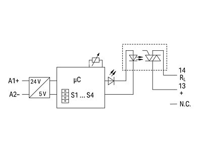 Modul polovodičového časového relé; Jmenovité vstupní napětí: 24 V DC; Rozsah výstupního napětí AC 24–230 V; Mezní trvalý proud 1 A; 2vodičové připojení; Multifunkční/vícečasové; Indikace stavu, žlutá; Konstrukční šířka 6 mm