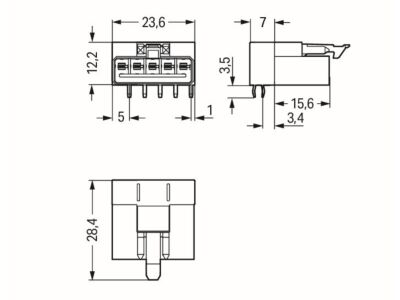 WAGO Konektor 890-815/011-000 na desky plošných spojů Úhlové provedení 5pólová, černá
