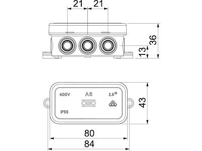 Stupeň krytí IP55, jmenovité napětí 690 V, jmenovitý průřez 2,5 ÷ mm², 6 vývodů pro kabely o průměru 5–14 mm