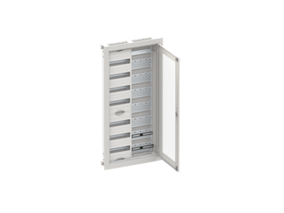 CU27VMW; Zapuštěná oceloplechová kombinovaná multimediální rozvodnice s dvířky; Rozteč: 125 mm; Počet sloupců: 2 (1křídlé dveře); 7 řadá (84 modulů); 1 sloupec pro přístroje; 1 sloupec pro multimediální část; RAL 9016 bílá; IP30/IK09