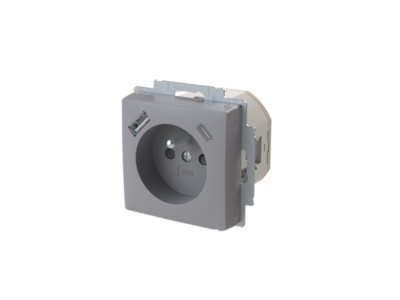 ABB ZONI Zásuvka 5569T-A32357 241 jednonásobná s clonkami, s nabíjením USB-A, USB-C, šedá
