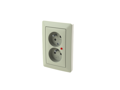 ABB Zoni 5593T-C02357 143 Zásuvka dvojnásobná, s clonkami, s natočenou dutinou, s ochranou před přepětím olivová / bílá