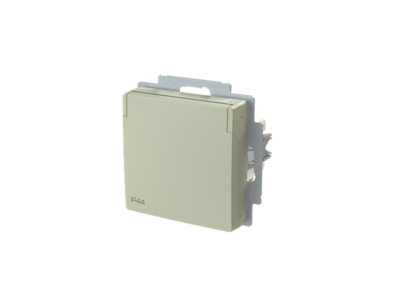 Zásuvka jednonásobná s bočními kontakty, s clonkami, s víčkem, IP44; Zoni®, olivová