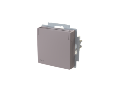 Zásuvka jednonásobná s bočními kontakty, s clonkami, s víčkem, IP44; Zoni®, greige