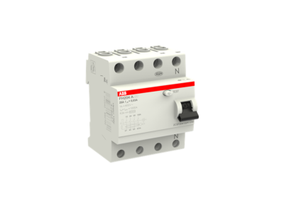 FH204 A-25/0,03; proudový chránič; čtyřpólový; jmenovitý proud: 25 A; citlivost: 30 mA; Typ A – pro střídavý a pulzující stejnosměrný reziduální proud (určeno pro 1f obvody s usměrňovači)