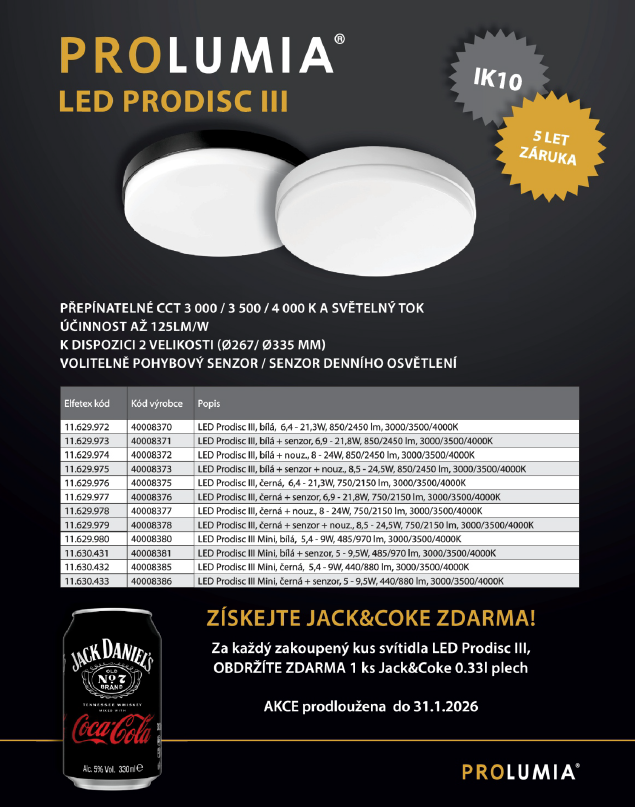 0Nakupte v listopadu vybraná svítidla PROLUMIA - LED PRODISC III a za každé zakoupené svítidlo obdržíte plechovku Jack&Coke.