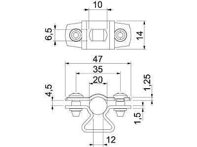 Distanční příchytka k montáži trubek a kabelů na stěnu, strop a podlahu. Se samojistným vrchním dílem. Upevnění pomocí podélného prolisu.