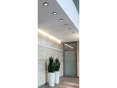 Stropní bodové svítidlo Emilio z kolekce funkčního osvětlení značky Azzardo v jednoduché kulaté verzi je určeno pro zapuštěnou montáž do interiéru. Vzhledem k vysokému krytí IP54, které představuje částečnou ochranu před prachem a ochranu proti stříkající vodě z každého směru, je ideálním osvětlením do koupelen a místností s výskytem vyšší vlhkosti vzduchu. Svítidlo je zhotoveno z kvalitních materiálů, jako je kov a hliník, s černou povrchovou úpravou. Mléčný skleněný difuzor je osazen paticí MR16 pro žárovku s maximálním příkonem 1 x 50 W (zdroj není součástí balení). S přípojením objímky na GU10, která není součástí balení, je možné svítidlo osadit touto žárovkou. Pro montáž je potřeba otvor o průměru 70 mm. Celkové rozměry svítidla činí 4 x 9 cm. Hloubka zapuštění dosahuje 30 mm. Bodovka je napájena ze sítě na 230 V a vztahuje se na ni záruka 3 roky.