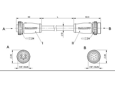 - Připojení 1: 7/8"-Zásuvka, přímý, 5-pólový