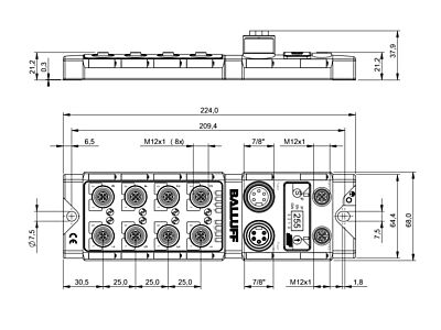- Připojení, pozice: 8× zásuvka M12 × 1, 5pólová, A kódovaná