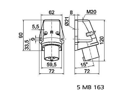 16A 3p (2P+PE) 230V (200 do 250V~) 6h IP44