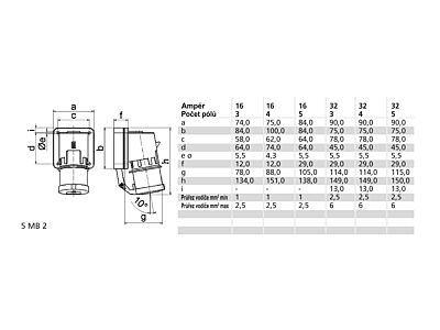 - Napětí podle ČSN EN 60309-2 230 V (50 Hz 60) modrá