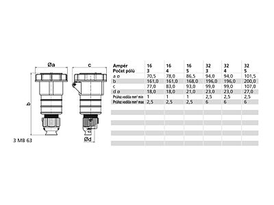 - Napětí podle ČSN EN 60309-2 500 V (50 Hz 60) černá