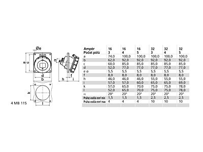 - Napětí podle ČSN EN 60309-2 400 V (50 Hz 60) červená