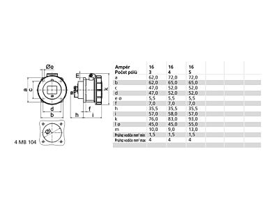 16A 5p (3P+N+PE) 400V (200/346 do 240/415V~) 6h IP67