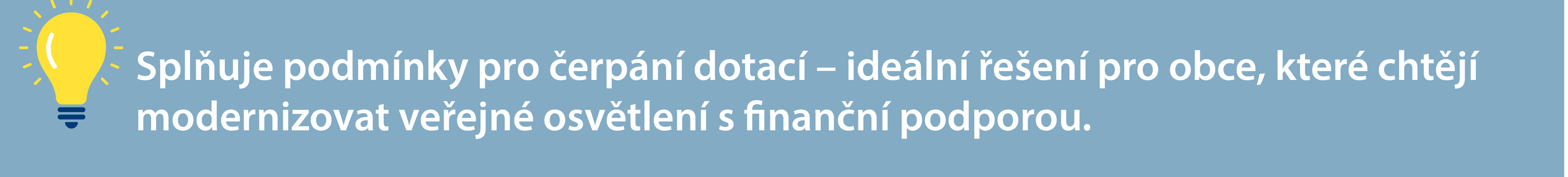 TIP: Splňuje podmínky pro čerpání dotací - ideální řešení pro obce, které chtějí modernizovat veřejné osvětlení s finanční podporou.
