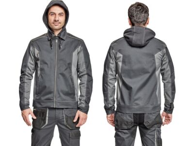 Pánská pracovní bunda, elastický inovativní materiál TRIFIBETEX®, ergonomický střih, odnímatelná kapuce, zesílená oblast ramen z materiálu Oxford, 2 boční kapsy, 1 vnitřní kapsa na telefon, reflektivní prvky v barevném odstínu.