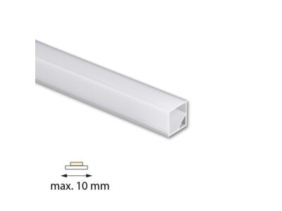 Mléčný difuzor pro použití s profilem RD2. Difuzor lze do profilu nacvaknout. Slouží k ochraně LED pásku proti působení vnějších vlivů, zabezpečuje ho rovněž proti vypadnutí a pomáhá rozptýlit světlo z jednotlivých LED – tím snižuje oslnění. Průměrná propustnost difuzoru je 70%. Materiál PC.