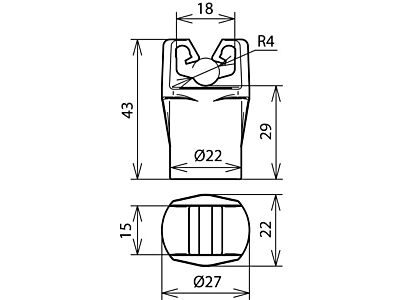 Držák vedení s násuvnou zdířkou, pro kombinaci s GFK tyčí (D 10 mm), pro upevnění vedení.