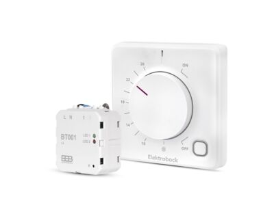 Bezdrátový termostat BT011 je určený pro ovládání topných zařízení, jako jsou přímotopy, sálavé panely, topné rohože a klimatizace. Slouží k regulaci teploty pomocí otočného kolečka a umožňuje režimy vytápění, chlazení, noční útlum i ochranu proti zamrznutí.