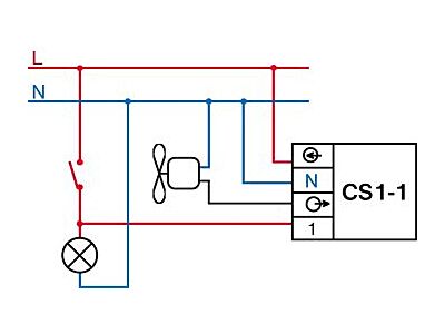 funkce může být spojena se spínačem osvětlení místnosti, kterou chceme ventilátorem odvětrávat. Ke spuštění ventilátoru dojde teprve po vypnutí osvětlení. Doba sepnutí je dána nastavovacím prvkem v rozmezí 1 až 10minut.