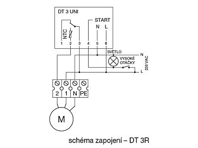 zapojení DT 3 – doběhový spínač pro jednootáčkové ventilátory
