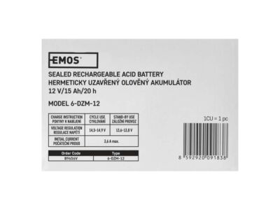 Akumulátor EMOS typ 6-DZM-12 má extra silnou mřížku článků a ta zajišťuje velmi vysokou cyklickou odolnost (okolo 800 cyklů při 50% D.O.D = hloubka vybití 50%), což tento akumulátor předurčuje pro aplikace, kde dochází k častému hlubokému vybíjení - cyklování. Je tedy ideální volbou pro pohony elektromotorů. Bezúdržbový, ventilem řízený olověný akumulátor v provedení AGM umožňuje být používán v libovolné poloze.