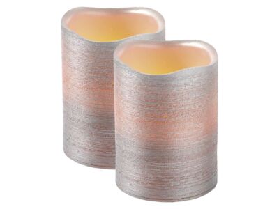 LED svíčky, 5x10cm, metalické stříbrné, 3x AAA, 2 ks