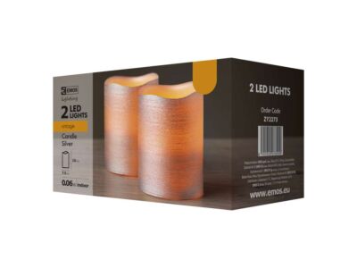 EMOS Dekorace SVÍČKA 2 LED metalické stříbrné 0,06W 3xAAA IP20 set