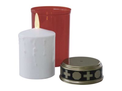 LED hřbitovní svíčka červená, 2x C, venkovní i vnitřní, teplá bílá, senzor