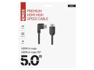 EMOS HDMI 2.0 high speed kabel A vidlice – A vidlice 90° 5m