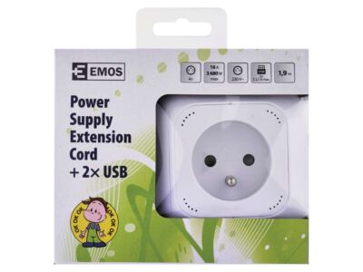 EMOS Přívod prodlužovací 1,9m 4zásuvka kostka +2 USB IP20 bílá
