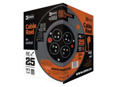 EMOS Přívod prodlužovací 25m zásuvky 4x230/16A IP20 s bubnem červená (H05VVF3G 3x1,5)