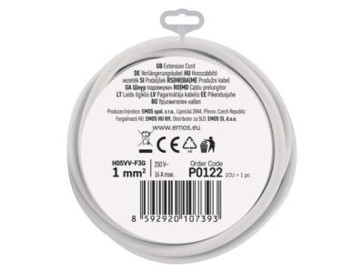 EMOS Přívod prodlužovací 2m 1zásuvka bílá PVC 1 mm2