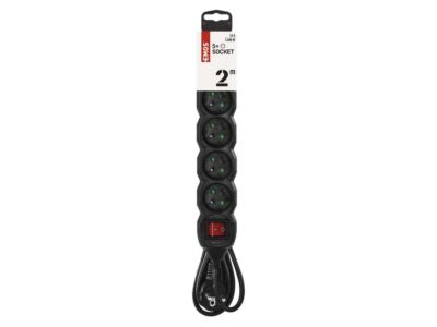 EMOS Přívod prodlužovací 2m 5zásuvek s vypínačem 16A IP20 černý