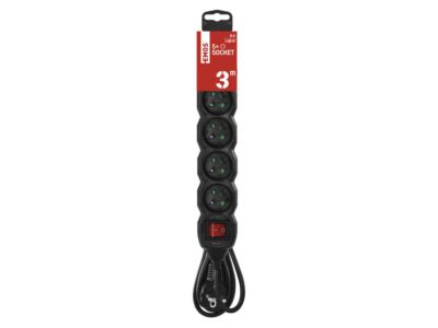EMOS Přívod prodlužovací 3m 5zásuvka s vypínačem černá PVC 1,5mm2
