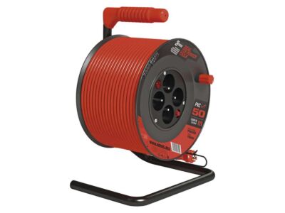 EMOS Přívod prodlužovací 50m zásuvky 4x230/16A IP20 s bubnem červená (H05VVF3G 3x1,5)