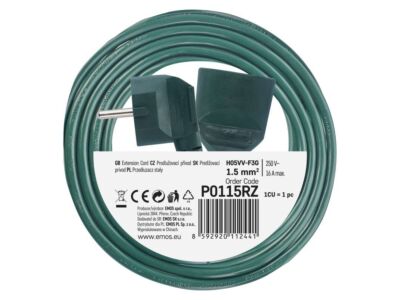 EMOS Přívod prodlužovací 5m 1zásuvka zelený PVC 1,5mm2