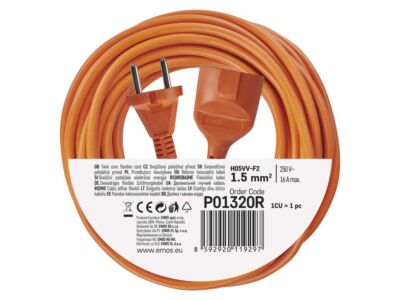 EMOS Přívod prodlužovací dvoužilový 20m 1zásuvka 16A IP20 oranžový