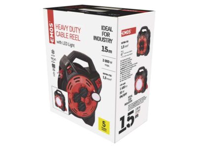 EMOS Přívod prodlužovací na bubnu 15m 4zásuvka LED reflektor 1,5mm pryž IP44