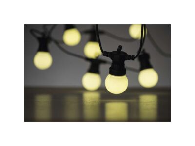 LED světelný řetěz – 10x párty žárovky mléčné, 5 m, venkovní i vnitřní, teplá bílá