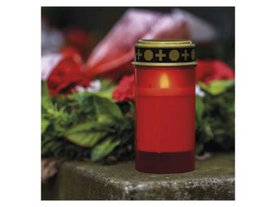 LED hřbitovní svíčka červená, 2x C, venkovní i vnitřní, teplá bílá, časovač