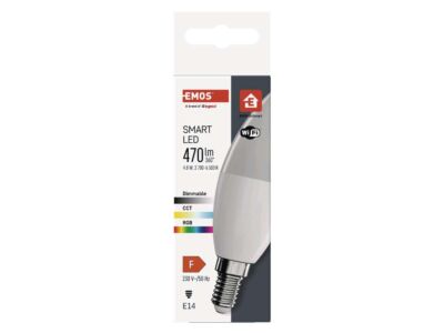 EMOS Žárovka LED 4,8W-40 E14 470lm 2700K GoSmart WiFi Svíčka RGB