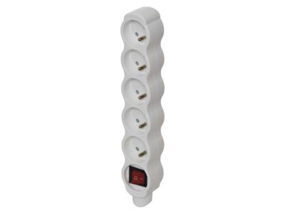 5 zásuvka s vypínačem pro pohyblivé přívody určená pro výrobu prodlužovacích přívodů nebo jako náhradní díl. Vhodná pro maximální zátěž 16 A max. Kvalitní samostatná zásuvka určená pro montáž prodlužovacího přívodu a k připojení elektrických spotřebičů dle daného počtu zásuvek. Zásuvka je bílé barvy s vypínačem.