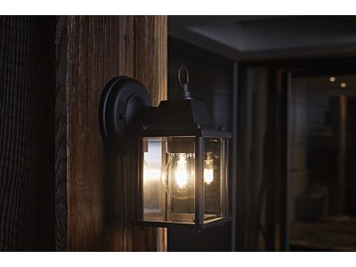 Klasická čtvercová lucerna. Vlastnosti výrobku: Tělo z tlakově litého hliníku. Difuzor z čirého skla. Třída ochrany: IP23. Výhody výrobku: Vysoká flexibilita ve výběru zdroje světla díky patici E27. Snadná a rychlá instalace. Oblasti použití: Pouze pro chráněné venkovní prostory. Vhodné pro venkovní použití opatřením svítidla dolů směřující objímkou žárovky. Osvětlení vstupních prostor. Terasy, balkony. Výbava / příslušenství: Včetně kompletního příslušenství pro montáž a zapojení. Zdroje světla nejsou součástí balení. Bezpečnostní informace: Všechna elektrická připojení musí provést kvalifikovaná osoba.. Pozor – nebezpečí úrazu elektrickým proudem.. Výrobek v třídě ochrany I. Všechny elektricky vodivé, kovové části pouzdra, které mohou během provozu nebo údržby v případě poruchy absorbovat napětí, musí být trvale připojeny k ochrannému zemnicímu vodiči..